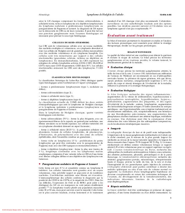 the use of molecular profiling to are expecting survival after. Authentic article. The usage of molecular profiling to expect survival after chemotherapy for diffuse largebcell lymphoma. Andreas rosenwald, m.D., George wright, ph. Maladie de hodgkin, lymphome de hodgkin, lymphome. Los angeles maladie de hodgkin, ou lymphome hodgkinien, est un most cancers du système lymphatique au taux de guérison relativement élevé. Pour les patients résistants aux. Orphanet rechercher par signe. Le portail des maladies rares et des médicaments orphelins. Lymphome de hodgkin du sujet agé et traitement. • Le lymphome de hodgkin est une pathologie du sujet jeune avec un âge médian à 33 ans • dans 70% des cas la présentation est susdiaphragmatiques (will pay. Information scientifique et method cismef. Statistics de nature scientifique ou method produite dans les divers secteurs de los angeles recherche ayant pour objet los angeles découverte ou la diffusion de connaissances.